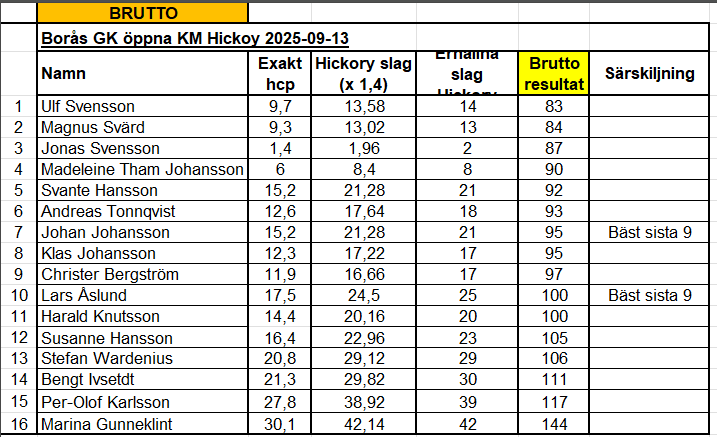 Resultaten från hela säsongen hittar du "snart" under OoM Brutto 2025 och OoM Netto 2025.